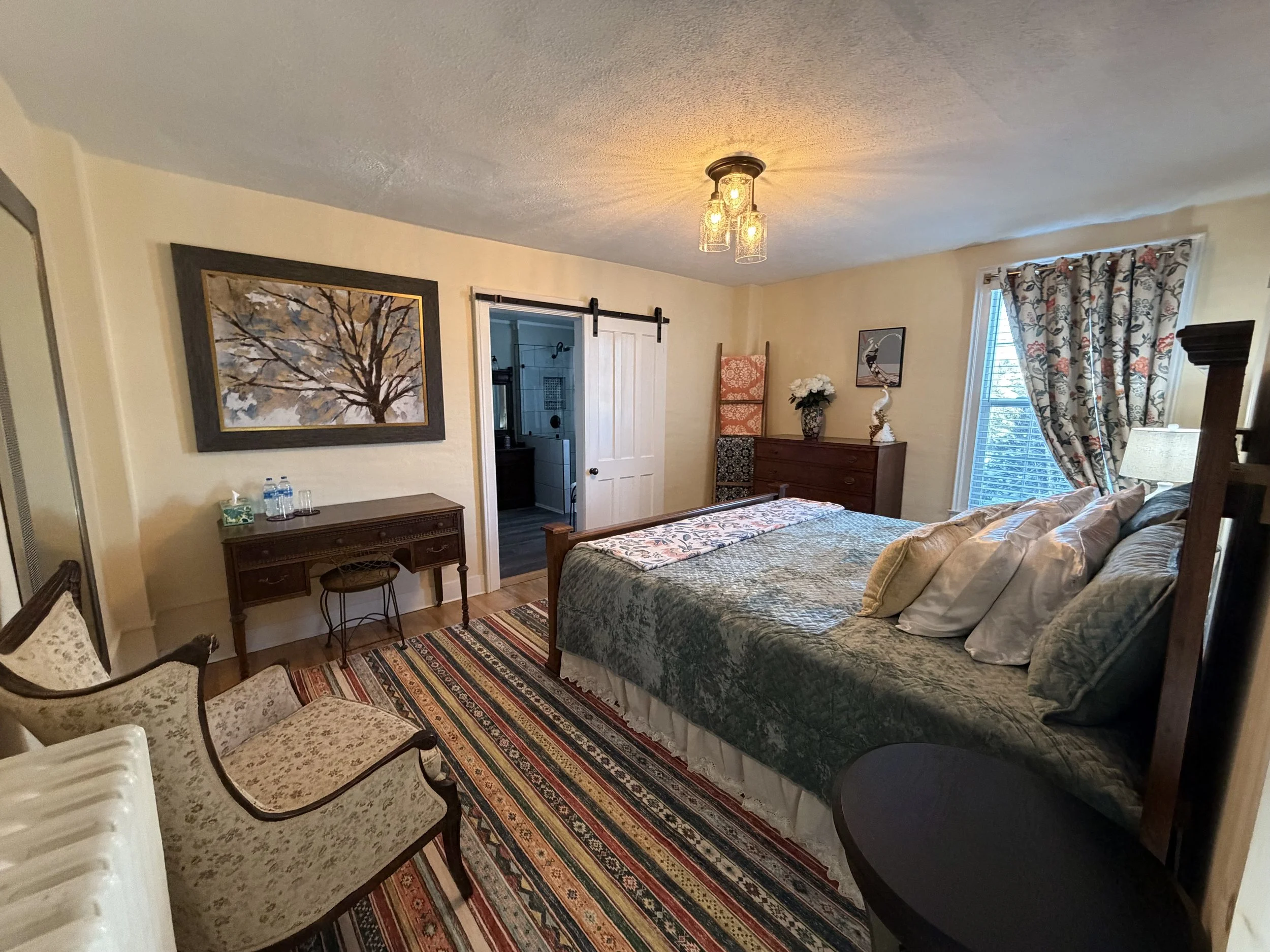 The warmest, coziest spot in the house, this tranquil bedroom is in the back quarters of the house facing Campbell Street.
